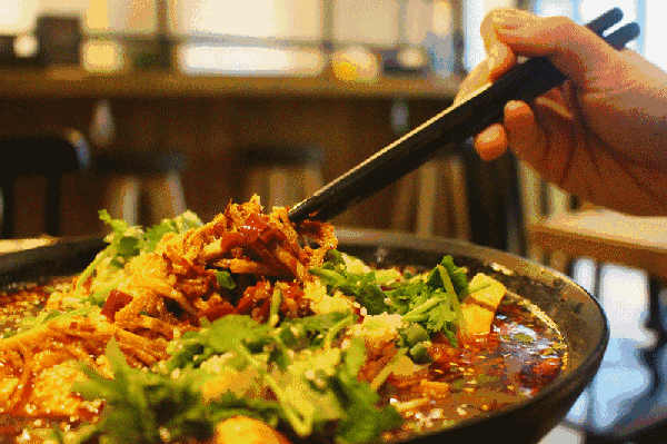 讓食材在濃香的料湯中翻滾,撒上青綠蔥花香菜,吃辣小能手還要加一把小米辣,香辣誘人的香味就順著鼻尖鉆進胃里和腦中。